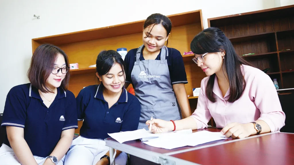 本校は日本語学校以外に介護職業訓練校としても機能しております。介護授業に必要な備品も日本式で完備しておりますので、より本格的な介護実践に近づけます。さらに介護福祉士の先生が授業を担当しておりますので、介護の詳しいところまで生徒に教えられます。これらのプロセスを経て、入職後1年以内には介護職員の一員として成長できると期待しております。